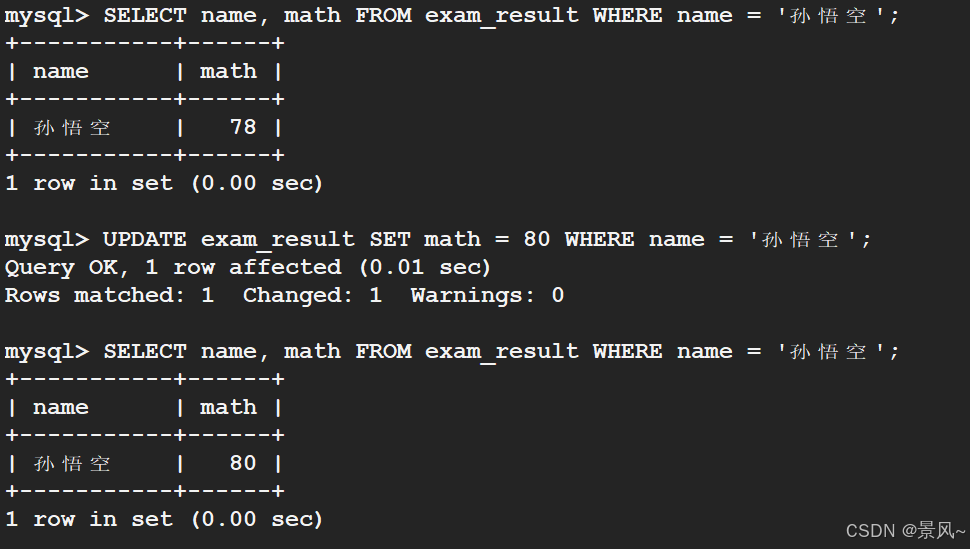 [将孙悟空同学的数学成绩变更为 80 分](#将孙悟空同学的数学成绩变更为 80 分)