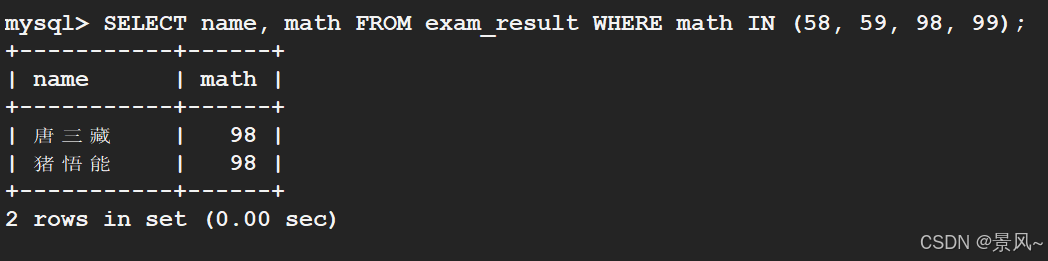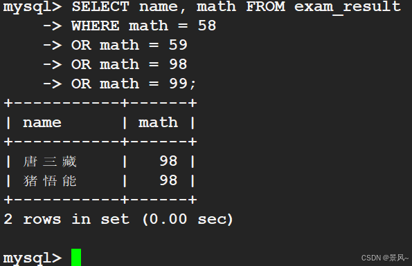 [数学成绩是 58 或者 59 或者 98 或者 99 分的同学及数学成绩](#数学成绩是 58 或者 59 或者 98 或者 99 分的同学及数学成绩)