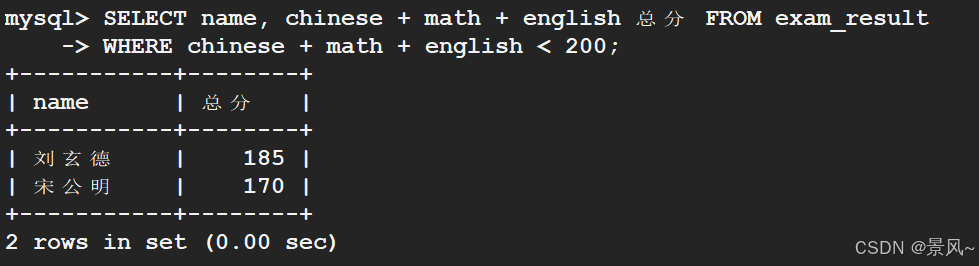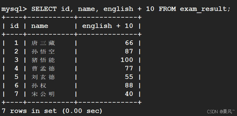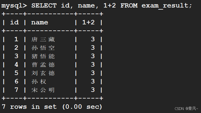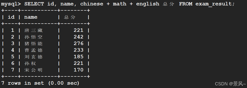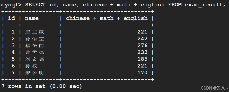 column列表中的表达式中也可以包含多个表中已有的字段,这时我们就可以通过表达式计算出更多有意义的数据。如下:
