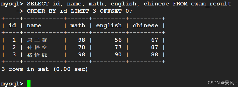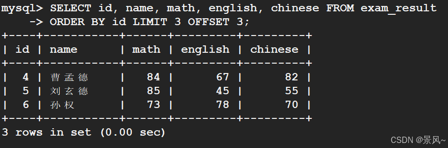 [按 id 进行分页,每页 3 条记录,分别显示 第 1、2、3 页](#按 id 进行分页,每页 3 条记录,分别显示 第 1、2、3 页)