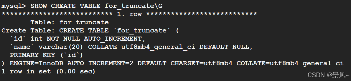 查看创建表时的相关信息时可以看到,有一个AUTO_INCREMENT=n