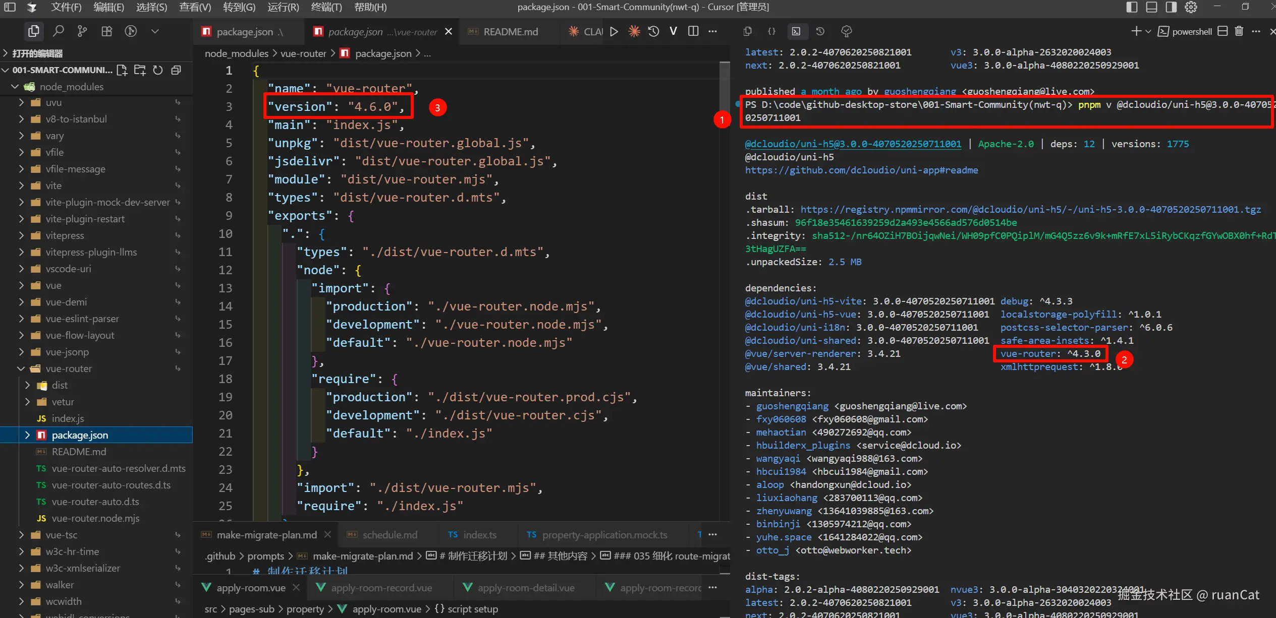 但是在我刚刚重新安装的依赖内,是安装了 vue-router@4.6.0