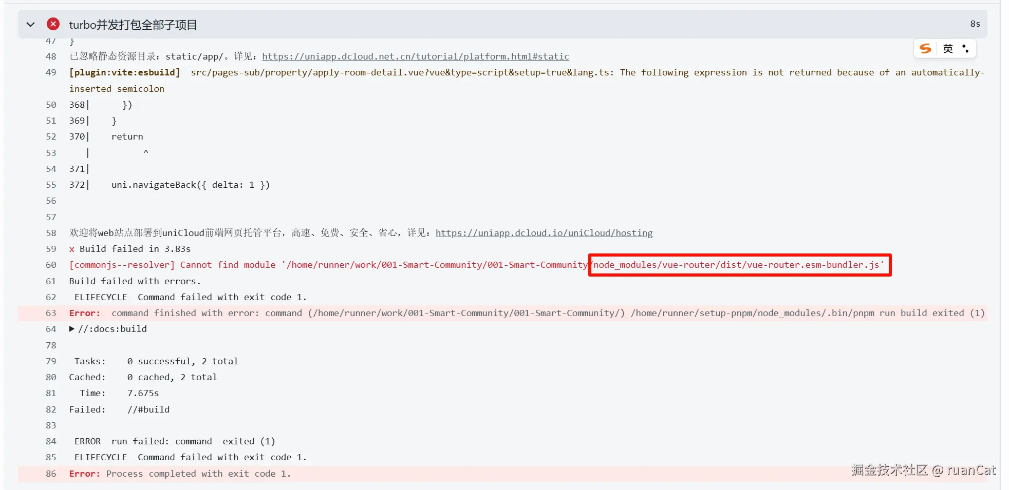 问题起因,在 github workflow 流水线打包的项目出现莫名其妙的故障,称找不到 vue-router.esm-bundler.js