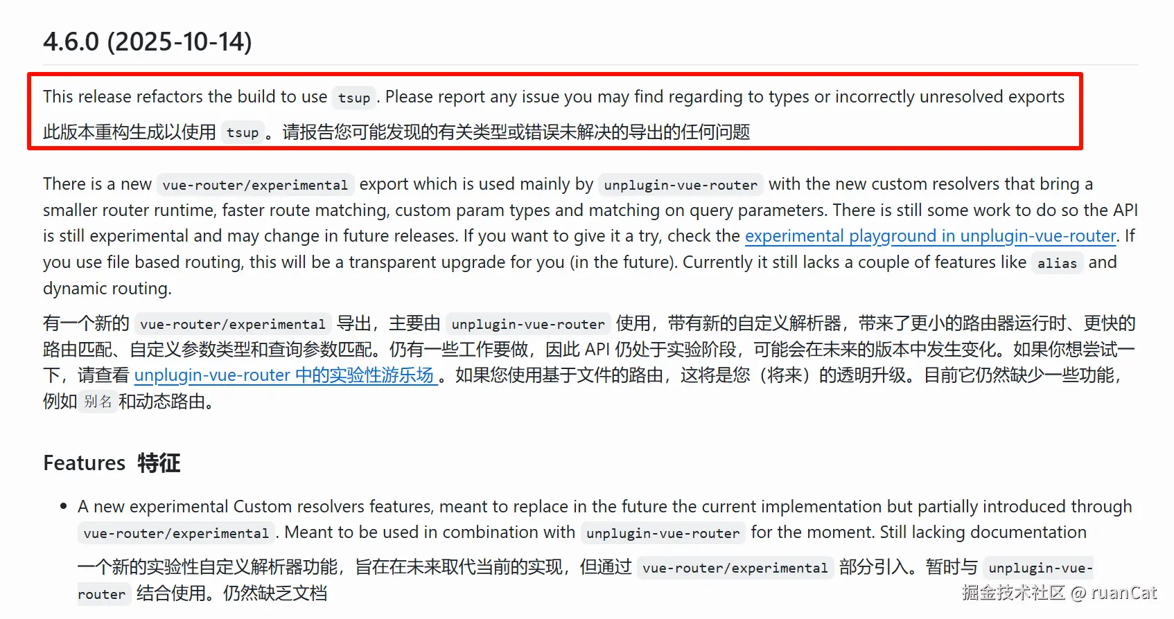 阅读此更新日志,得知 vue-router 在 4.6.0 版本做了重构,而且有可能会出现类型错误和文件未导出的问题。