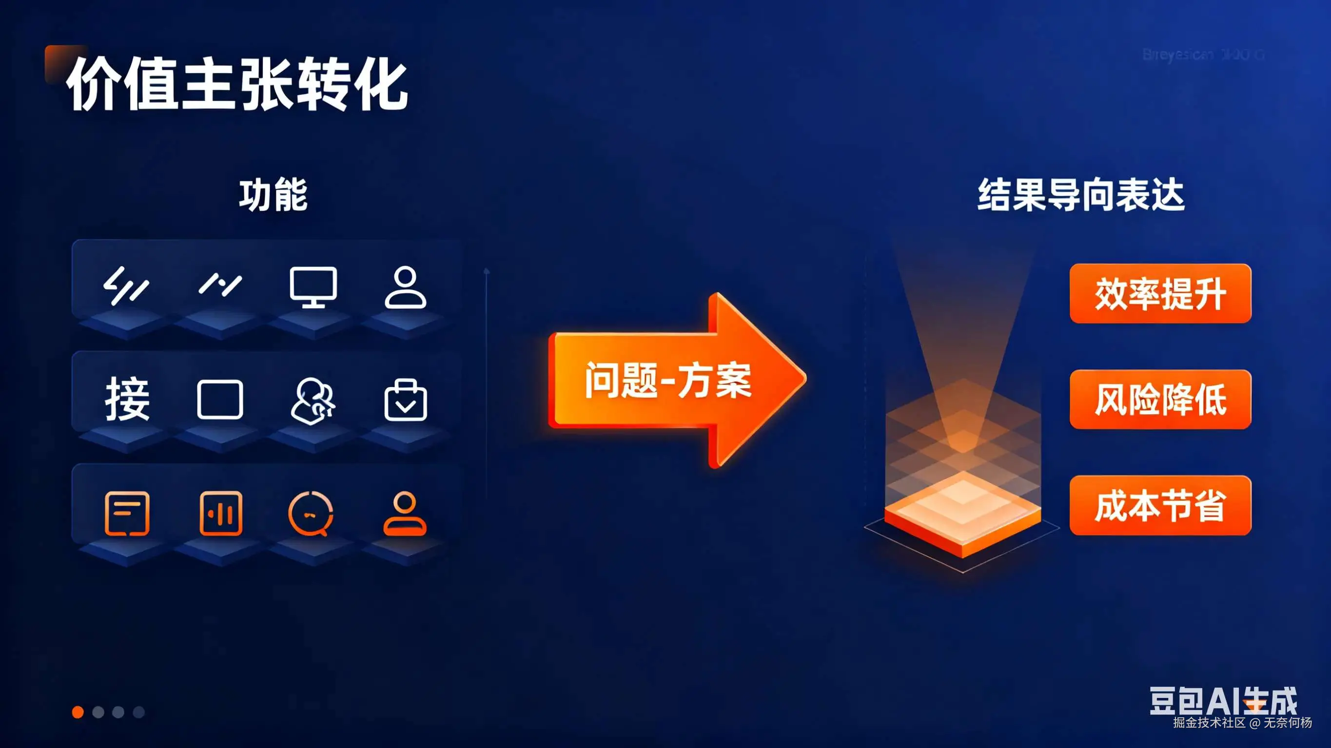 你不是在卖一个功能集合,而是在帮助客户更高效、更安全或更低成本地解决问题。