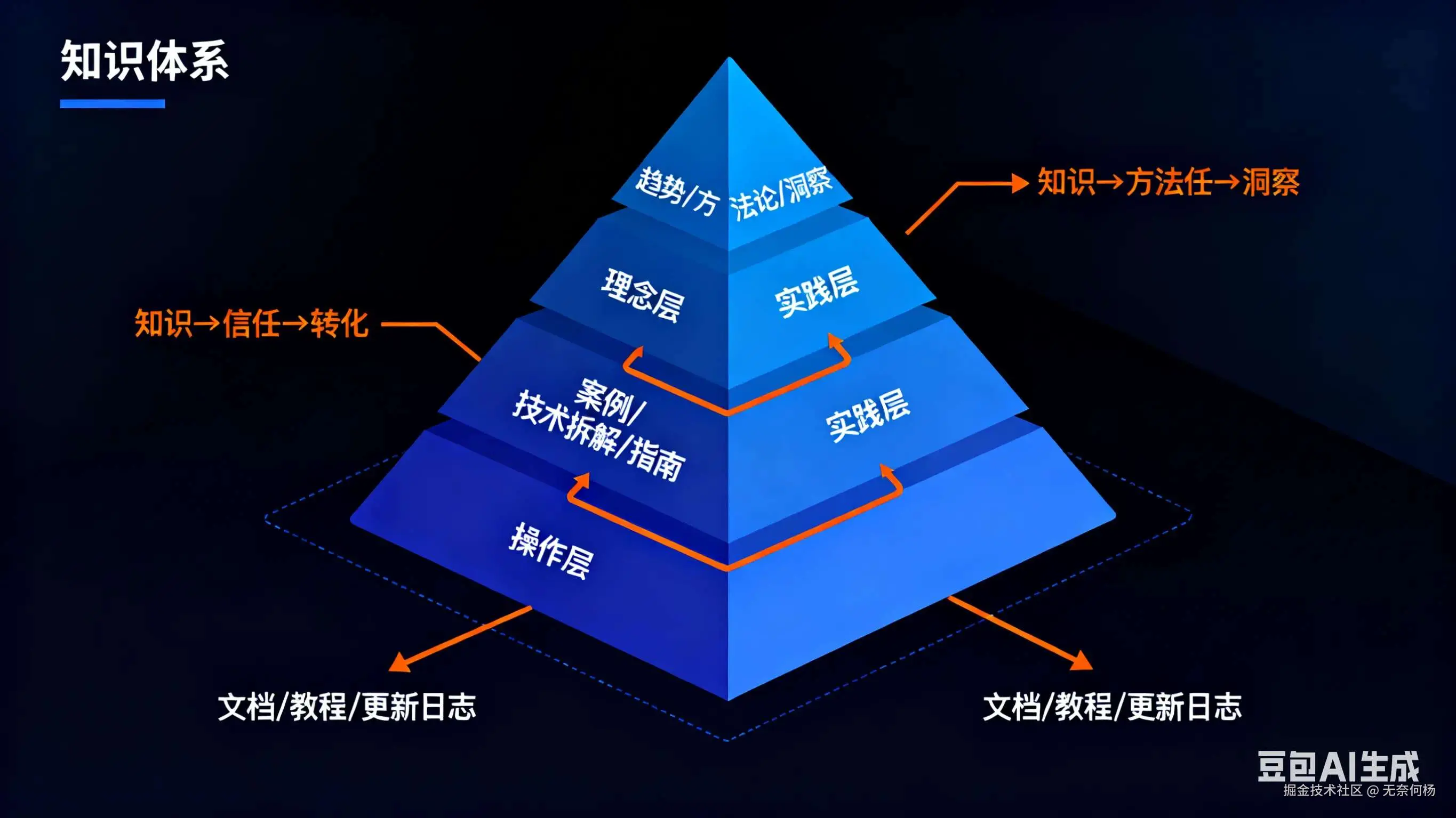 中层:实践层 | 使用指南、案例解析、技术拆解 | 传递专业能力 |