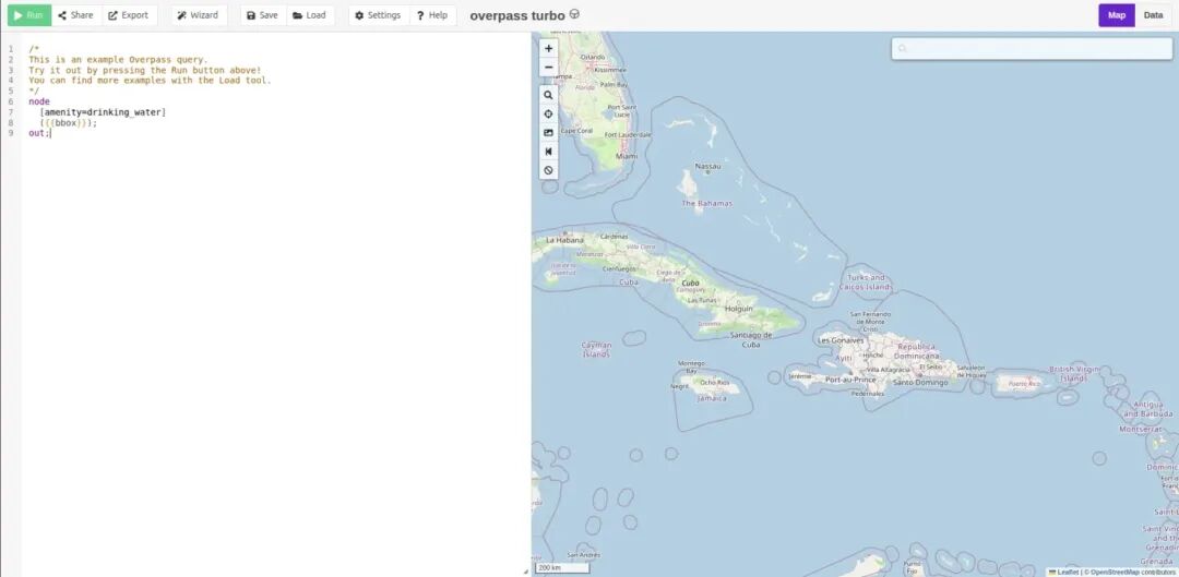 Overpass Turbo可通过官网(https://overpass-turbo.eu)直接访问,无需安装或注册。它提供了一个网页版界面,专门用于查询Overpass API------也就是OpenStreetMap的数据提取引擎。