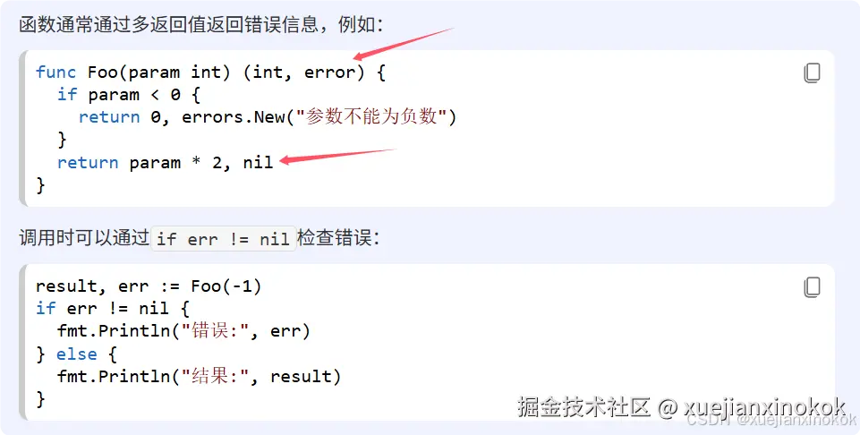 另一个例子是 为错误建模。在 Go 中,当一个函数可以返回错误时,惯用的做法是将其作为第二个值返回。按照惯例,第一个值或第二个值要么为 nil (Go 的 null 值)。 go 如何返回错误