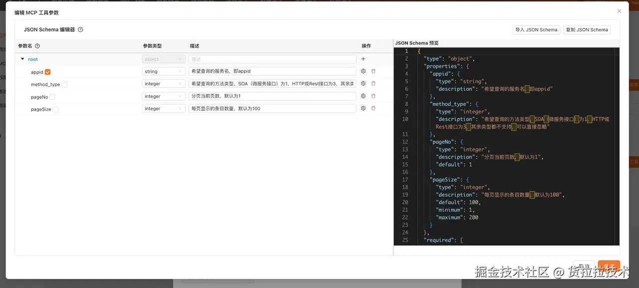 在MCP Server 配置平台上添加MCP Tool和对应的后端接口,能灵活动态地对外暴露MCP能力,并且可以一键发布到MCP服务市场中。