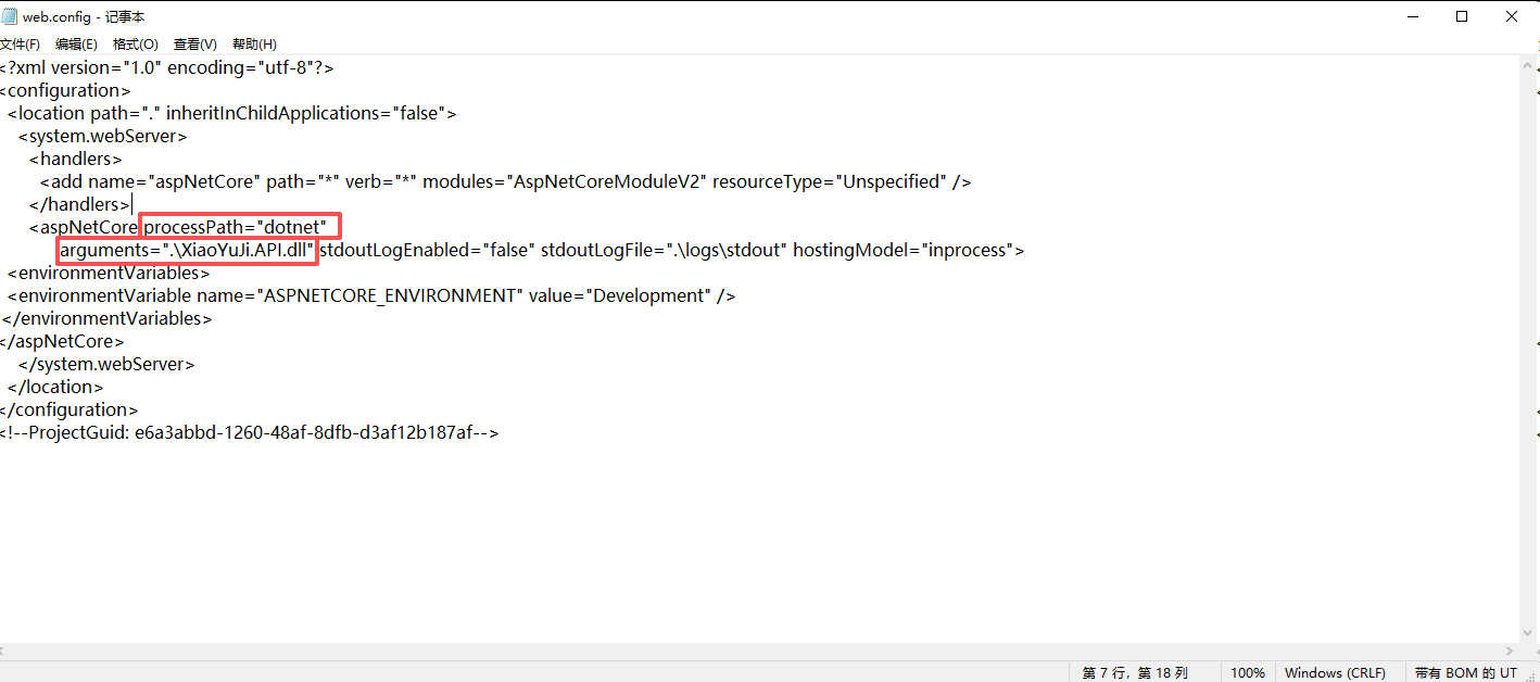<environmentVariable name="ASPNETCORE_ENVIRONMENT" value="Development" />