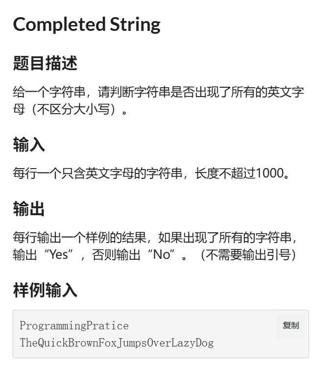 if(sum==26) printf("Yes\n");