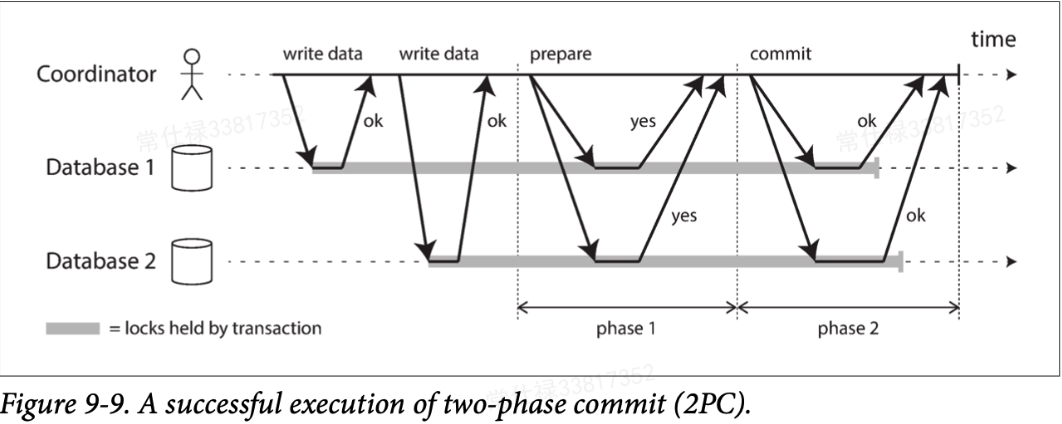 - 应用程序在每个参与节点上执行单节点事务,并将这个ID附加到操作上,这是读写操作都是单节点完成,如果发生问题,可以安全的终止(单节点事务保证)。