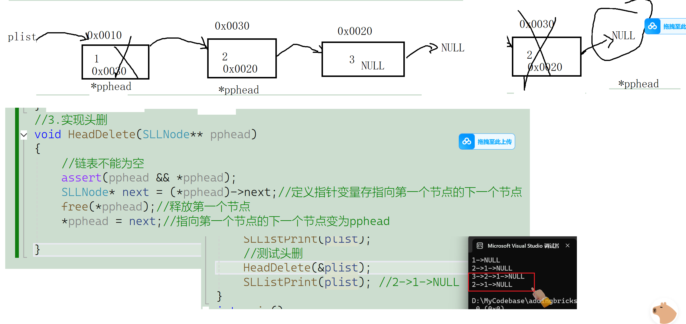 4.实现头删: