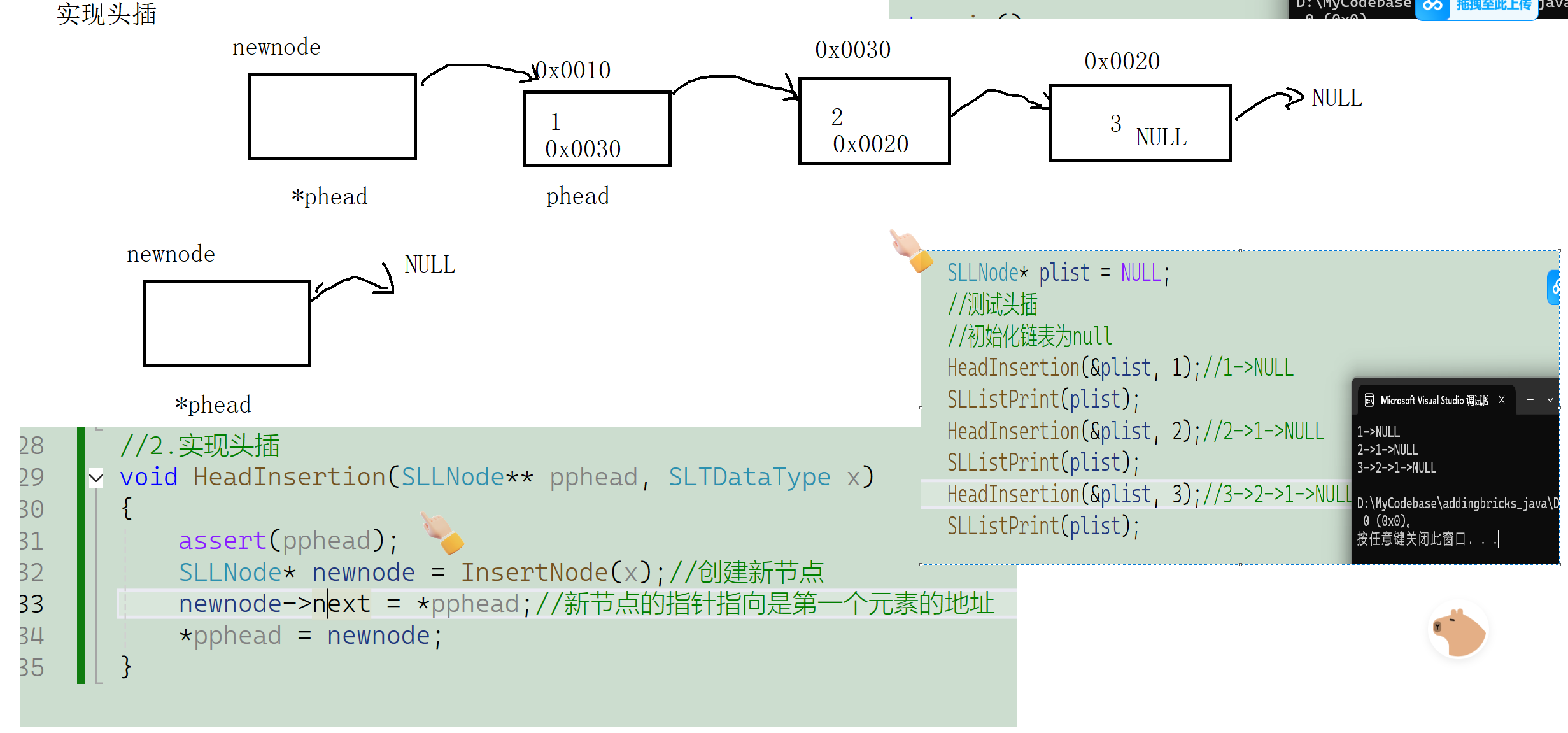 3.实现头插: