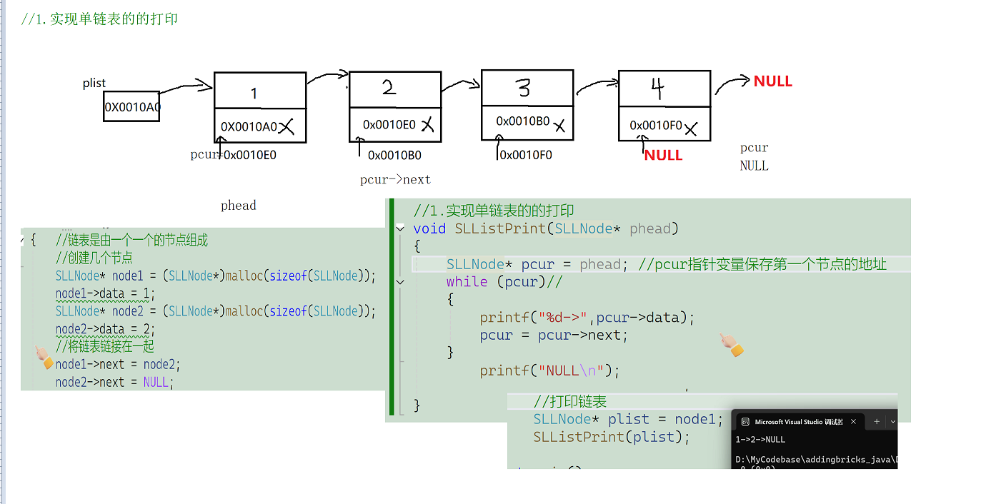 2.实现单链表的打印: