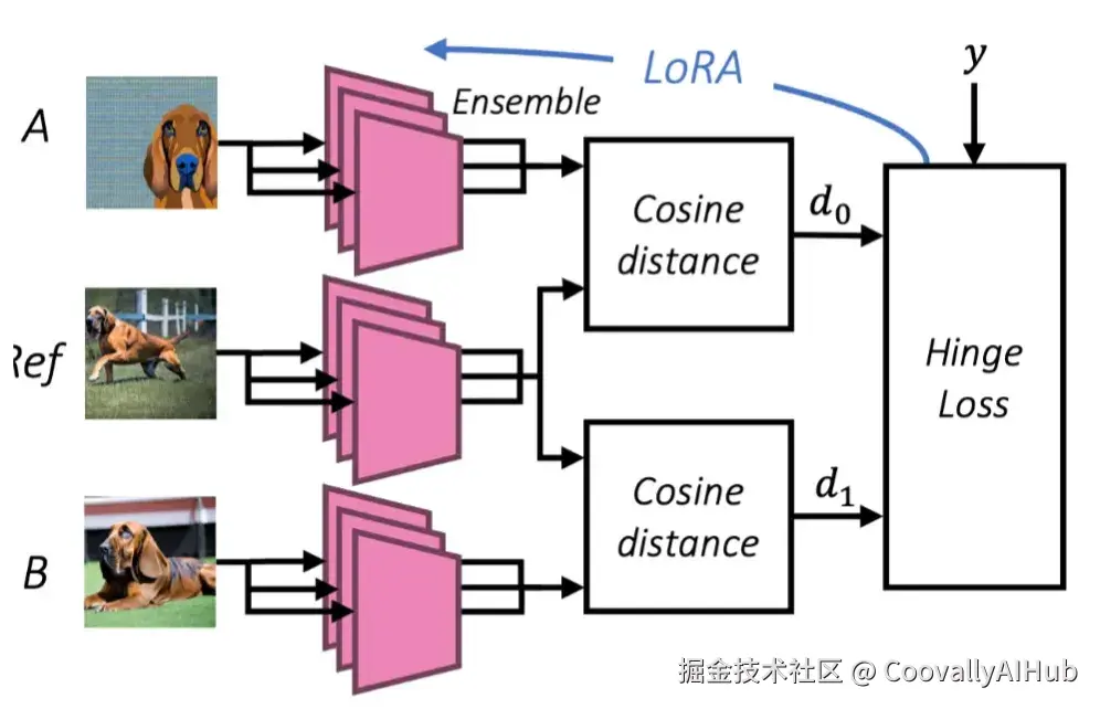 他们收集了大约2万份这种人类判断高度一致的数据。模型就被训练着让它自己计算出的"距离分数",能够符合人类的选择。这简直就是在学着让它自己的 "感知"和我们保持一致。