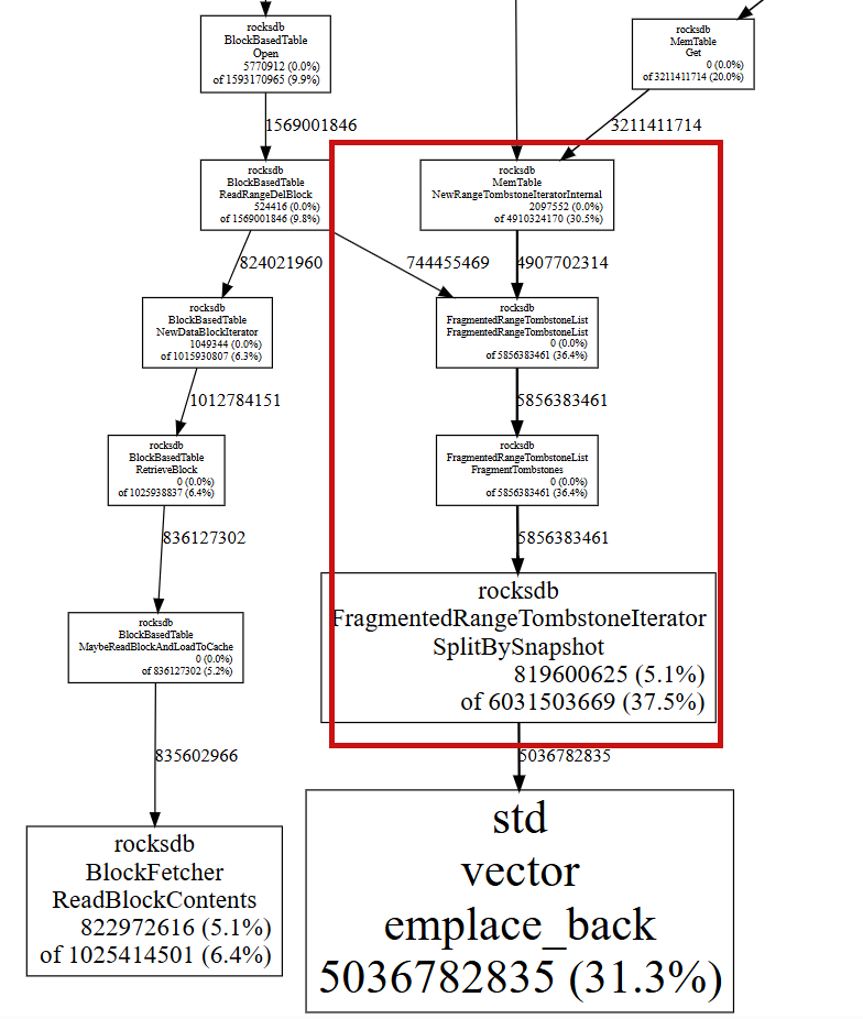 在大量持续delete range环境中(即使查询的key明确存在于MemTable或BlockCache中),我们的环境下,get的延迟不断增加