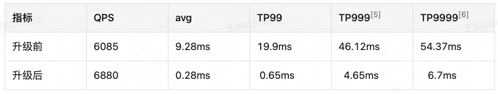 分析接口耗时统计:可得到以下数据,发现耗时均有明显下降,9999线的下降量低于理论的17ms,由于实际环境中其他因素的影响也基本符合预期。