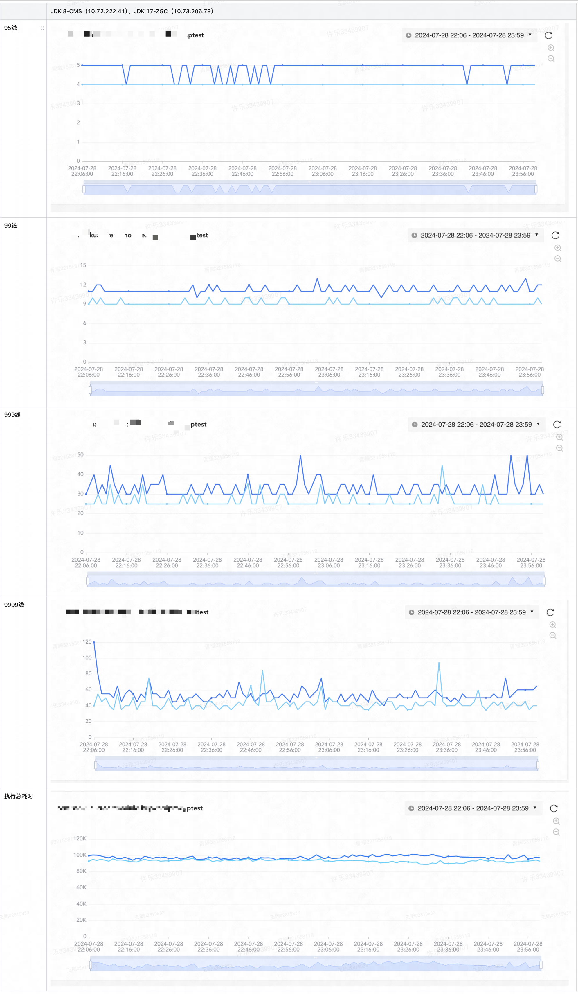 运行15天,JDK11机器长时间不重启三九、四九线会逐渐升高,JDK 17机器较为稳定。