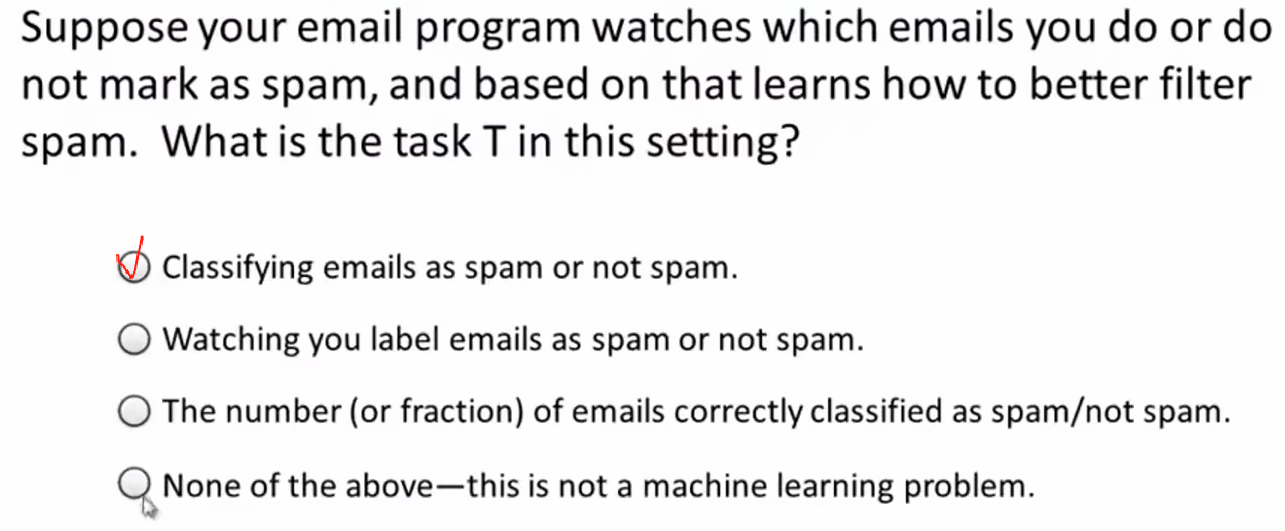 A computer program is said to learn from experience E with respect to some task T and some performance measure P, if its performance on T, as measured by P, improves with experience E.