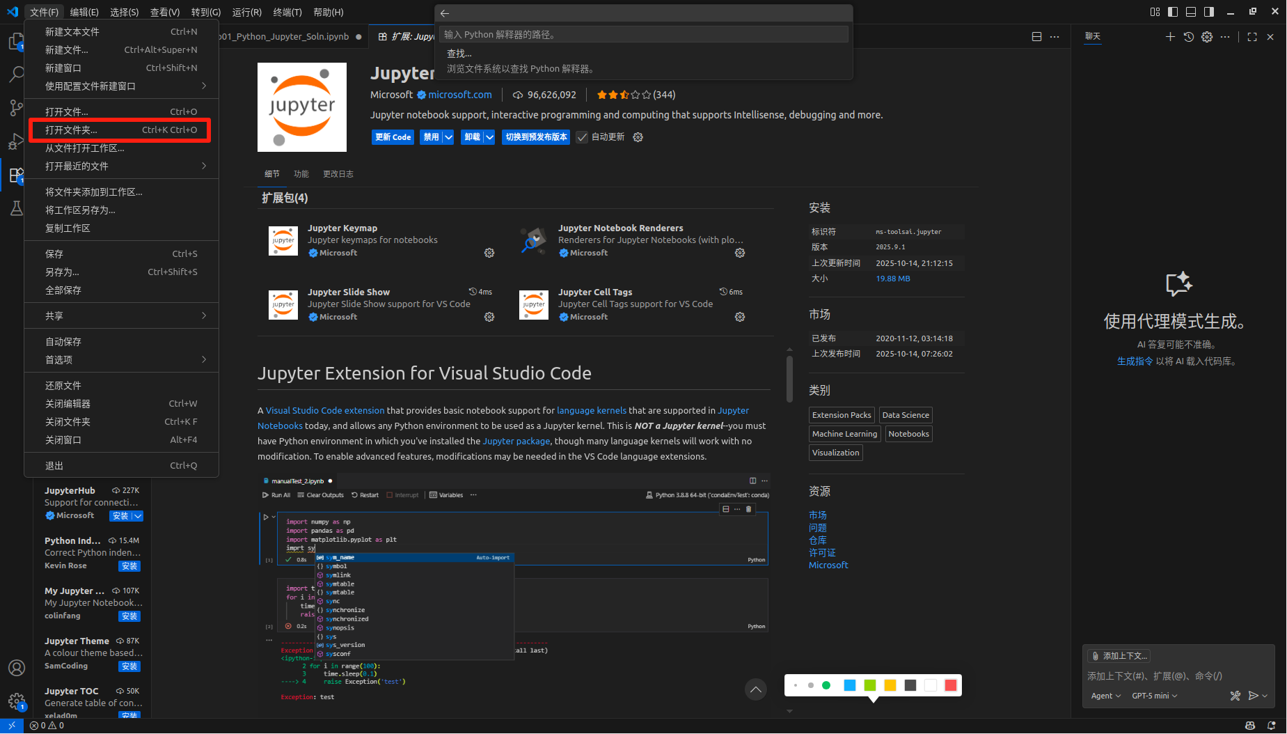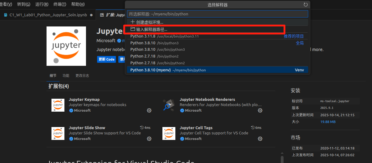 Jupyter Notebooks用于后续机器学习代码编译学习,其安装好类似于浏览器,亦可在VS Code上使用。