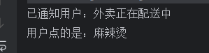 System.out.println("已通知用户:外卖正在配送中");