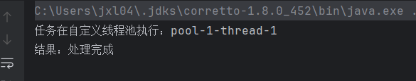 System.out.println("任务在自定义线程池执行:" + Thread.currentThread().getName());