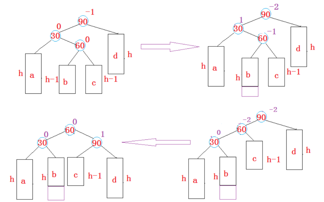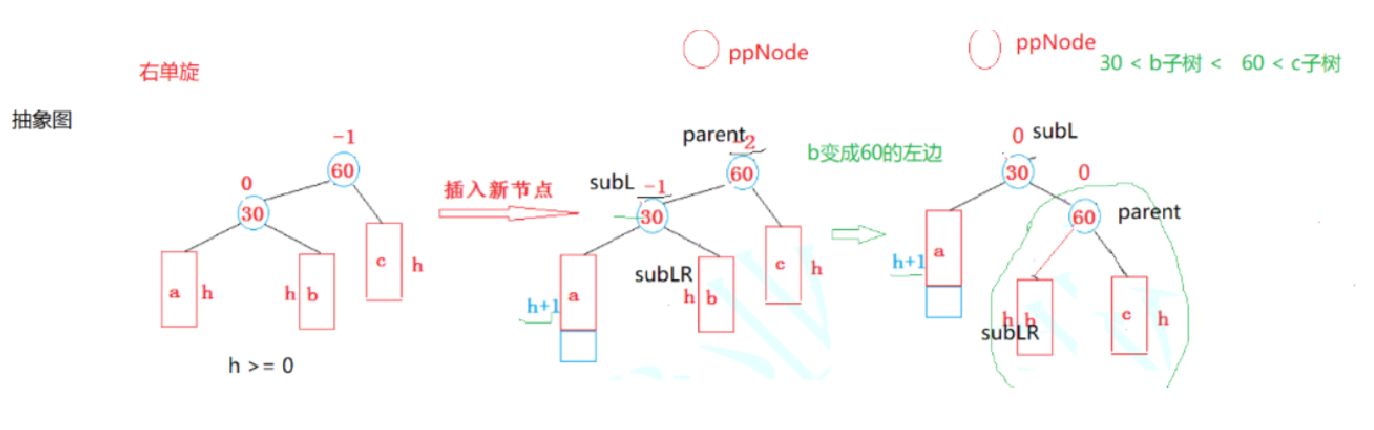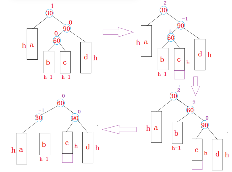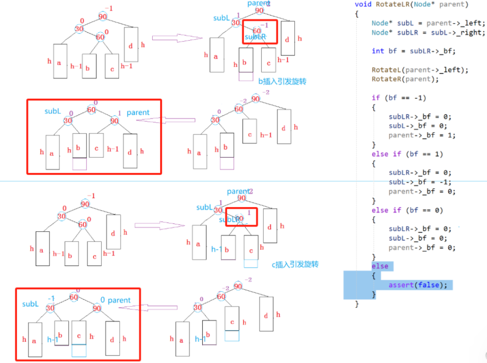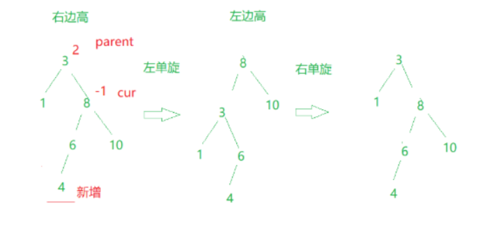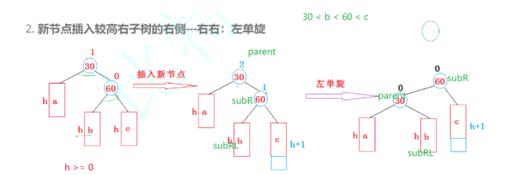 - 如果cur插入到parent的左侧,只需给parent的平衡因子-1即可