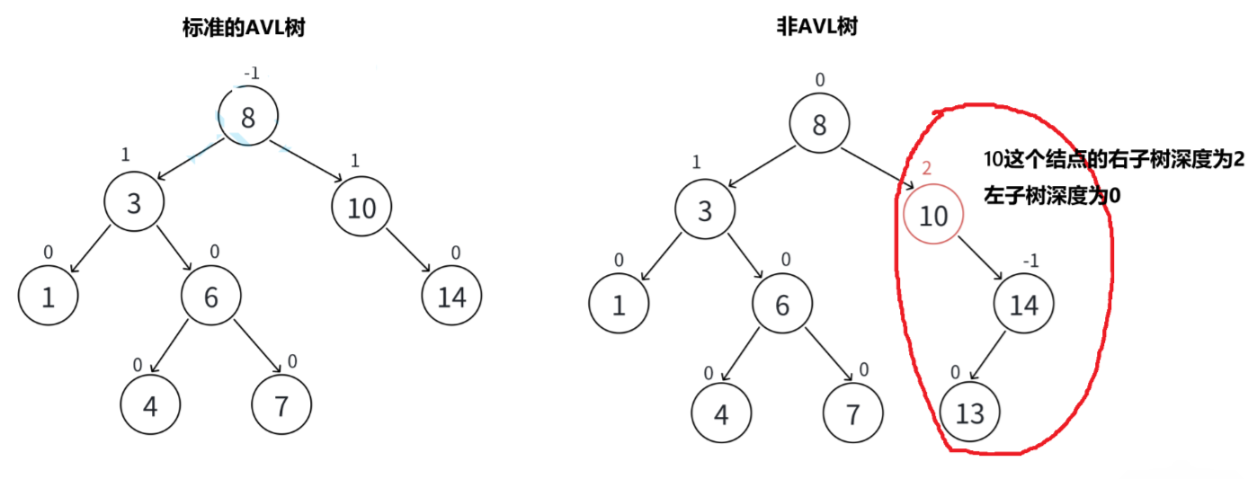 - 左右子树高度之差(简称平衡因子)的绝对值不超过1(-1/0/1)