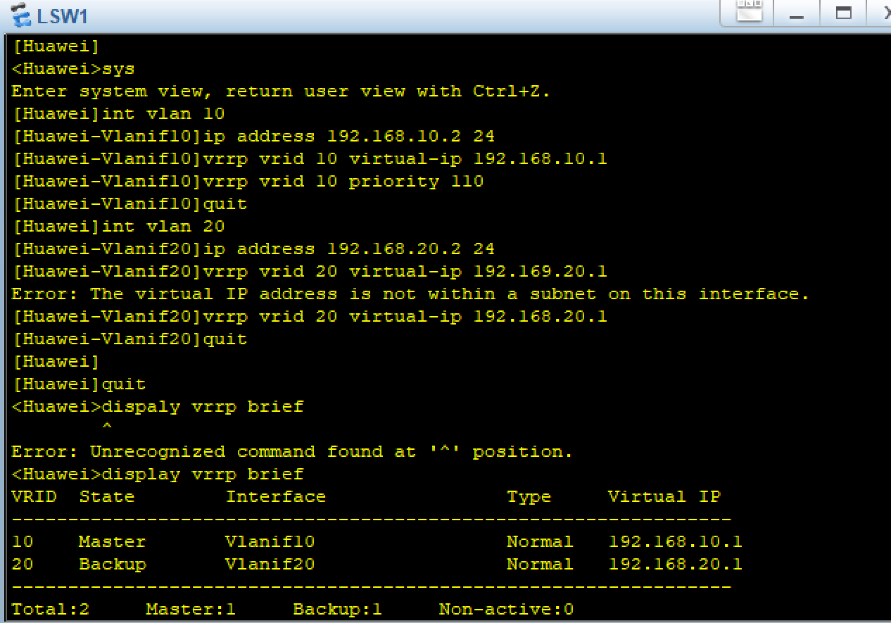 {2}同一VRRP组中只允许存在一个主路由器,一个备份路由器。