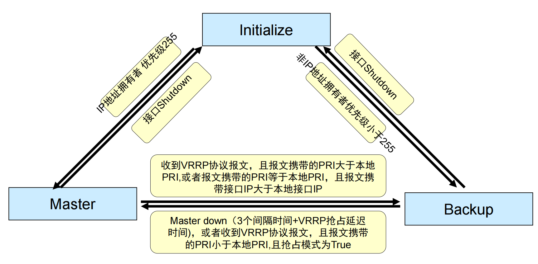 当路由器使能VRRP功能后,会根据优先级确定自己在备份组中的角色。当优先级变化后,根据VRRP模式确认VRRP状态。