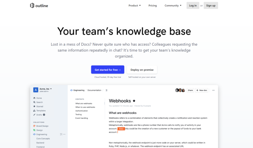 产品简介:Outline 是一款设计现代、美观、响应迅速的开源团队知识库。它与Slack等通讯工具深度集成,致力于提供流畅的协作和文档编写体验。