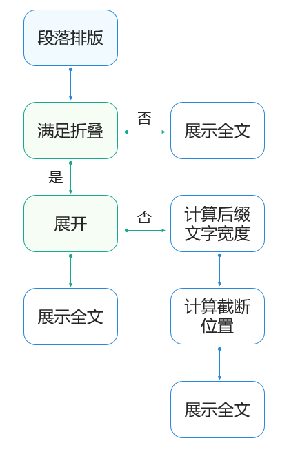 方法测量完整文本和限制行数的高度。 - 判断折叠需求:对比两种高度,确定是否需要折叠处理。