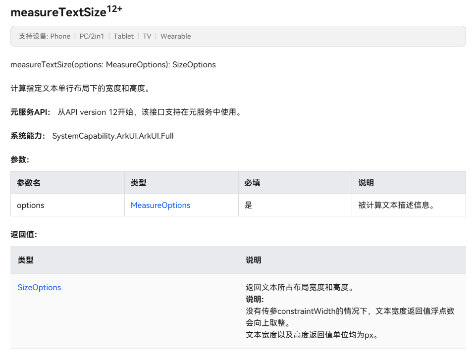 是ArkUI提供的文本测量接口,主要参数包括: