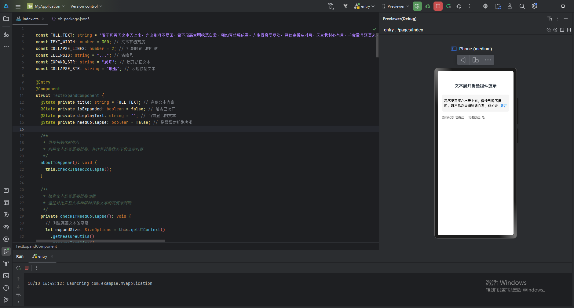 随着HarmonyOS 6的正式发布,声明式UI开发框架------ArkUI,为开发者提供了更加高效、便捷的应用开发体验。本文将深入探讨如何在DevEco Studio开发环境中,基于ArkUI框架实现一个文本展开折叠组件,带您走进HarmonyOS应用开发的实际应用场景。