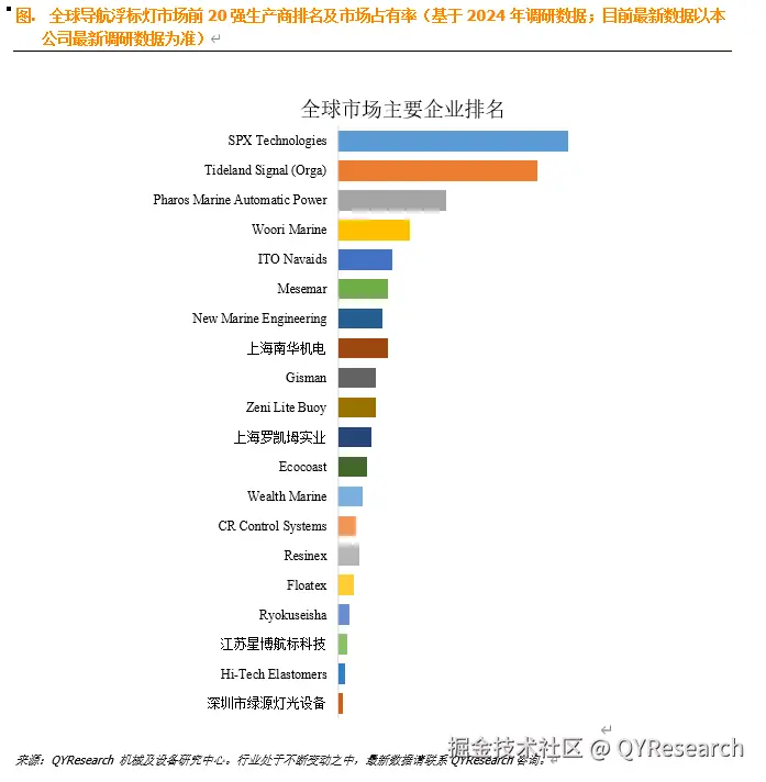 全球范围内,导航浮标灯主要生产商包括SPX Technologies、Tideland Signal (Orga)、Pharos Marine Automatic Power、Woori Marine、ITO Navaids等,其中前五大厂商占有大约53.82%的市场份额。
