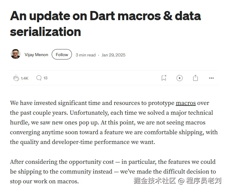 就在刚刚结束的Fluttercon EU 2025上,Google Dart团队宣布:投入数年时间、无数工程师心血的宏功能开发,彻底停止了!