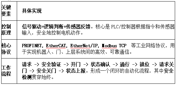 卷帘门控制的核心是一个 "信号驱动" 的自动化过程。它不依赖于人工按钮,而是由机器人或中央控制系统发出的指令信号来触发。整个系统可以分解为以下几个核心部分: