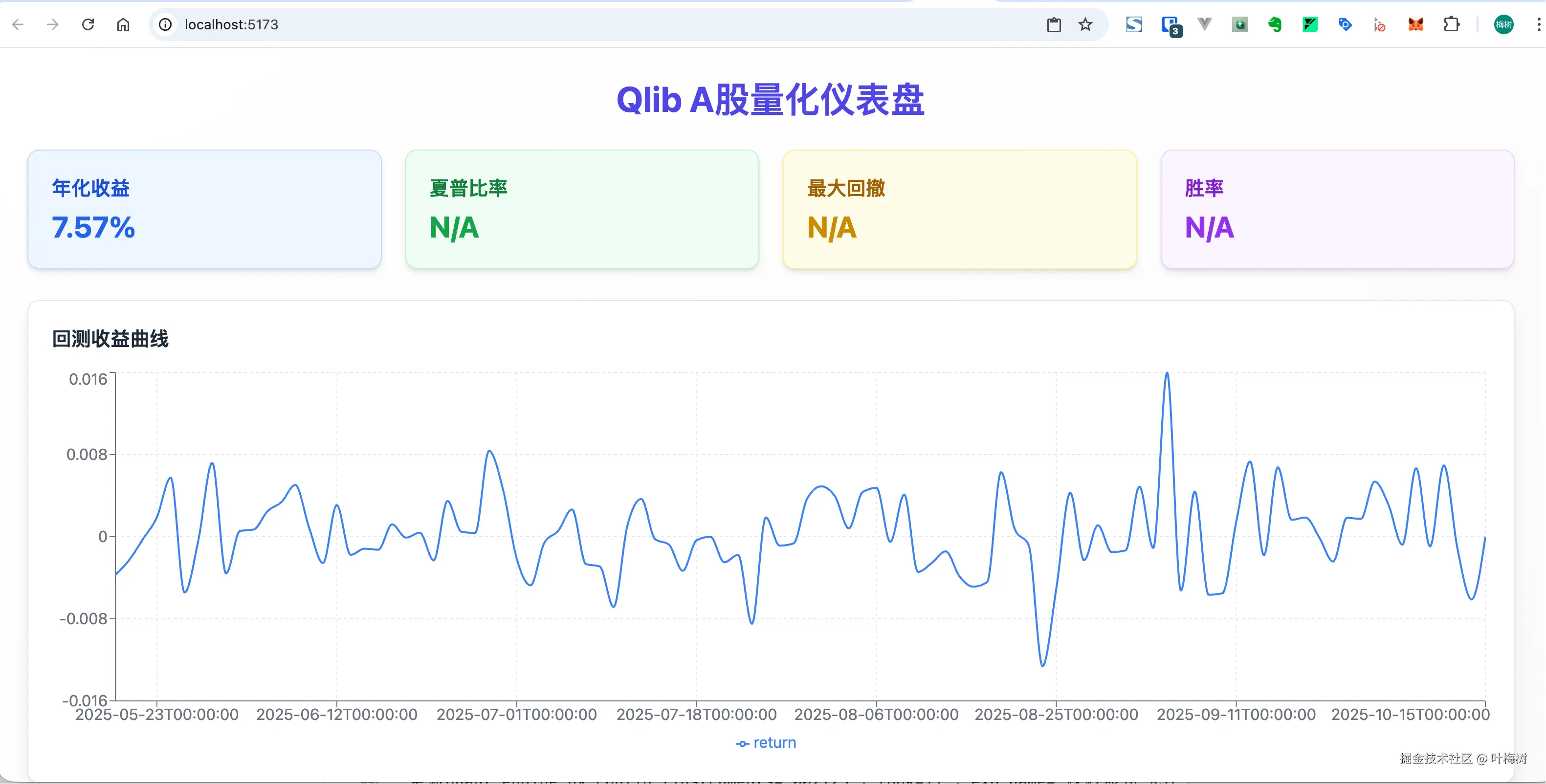 这个项目让我从0到1掌握量化全链路:Qlib的松耦合组件让策略迭代简单,前端可视化让结果直观。年化7.57%是起点,实盘需调参+风控。继续迭代:加Tushare实时数据、RL执行优化。量化是工具,不是魔法------数据+纪律=Alpha!