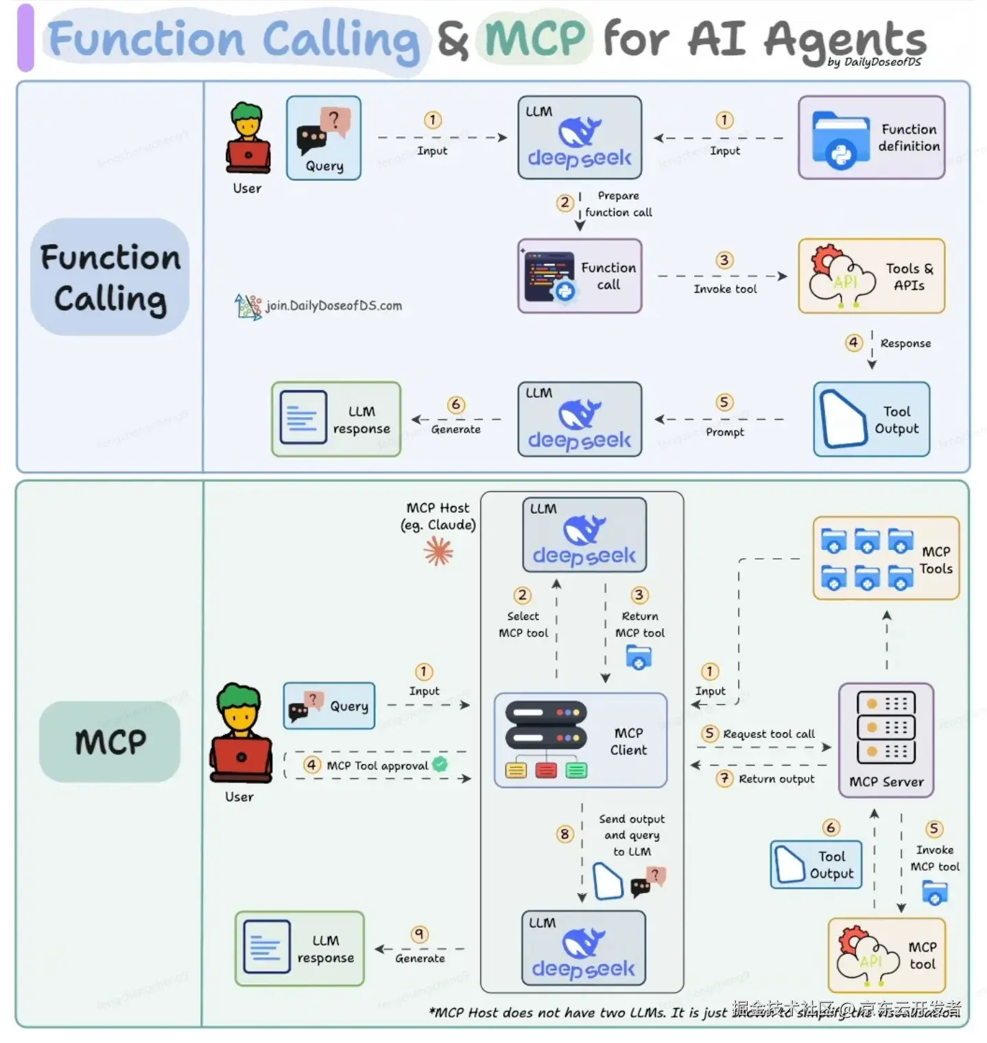 函数调用关注的是模型想要做什么,而 MCP 关注的是如何让工具变得可发现和可用------尤其是跨多个代理、模型或平台。