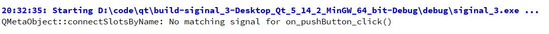 ,那么运行后点击按钮无反应,没有连接槽,并且出现下面提示,因为后者不存在Qt中。