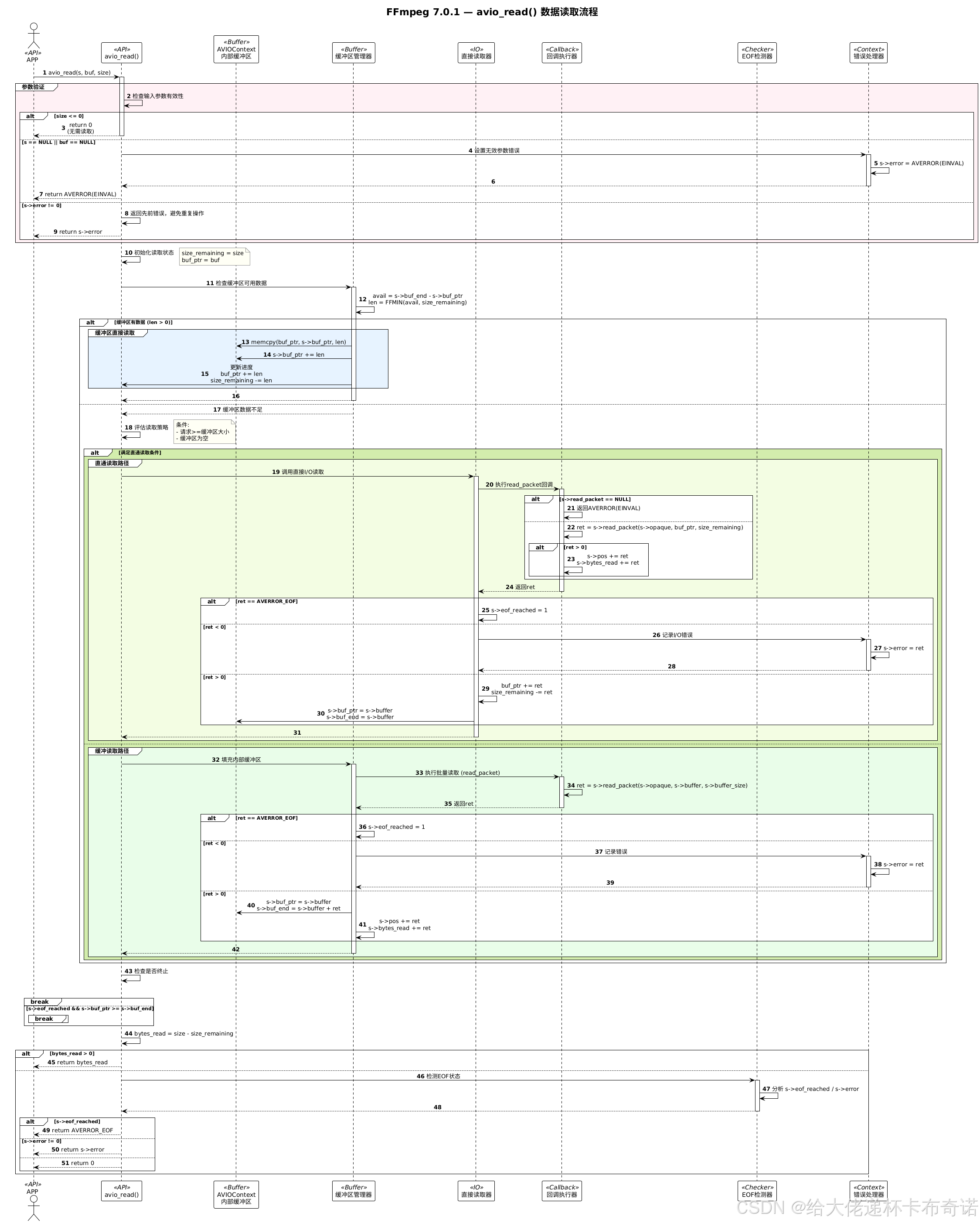 - 对于网络流读取,avio_read 会使用套接字操作,通过网络协议接收数据。