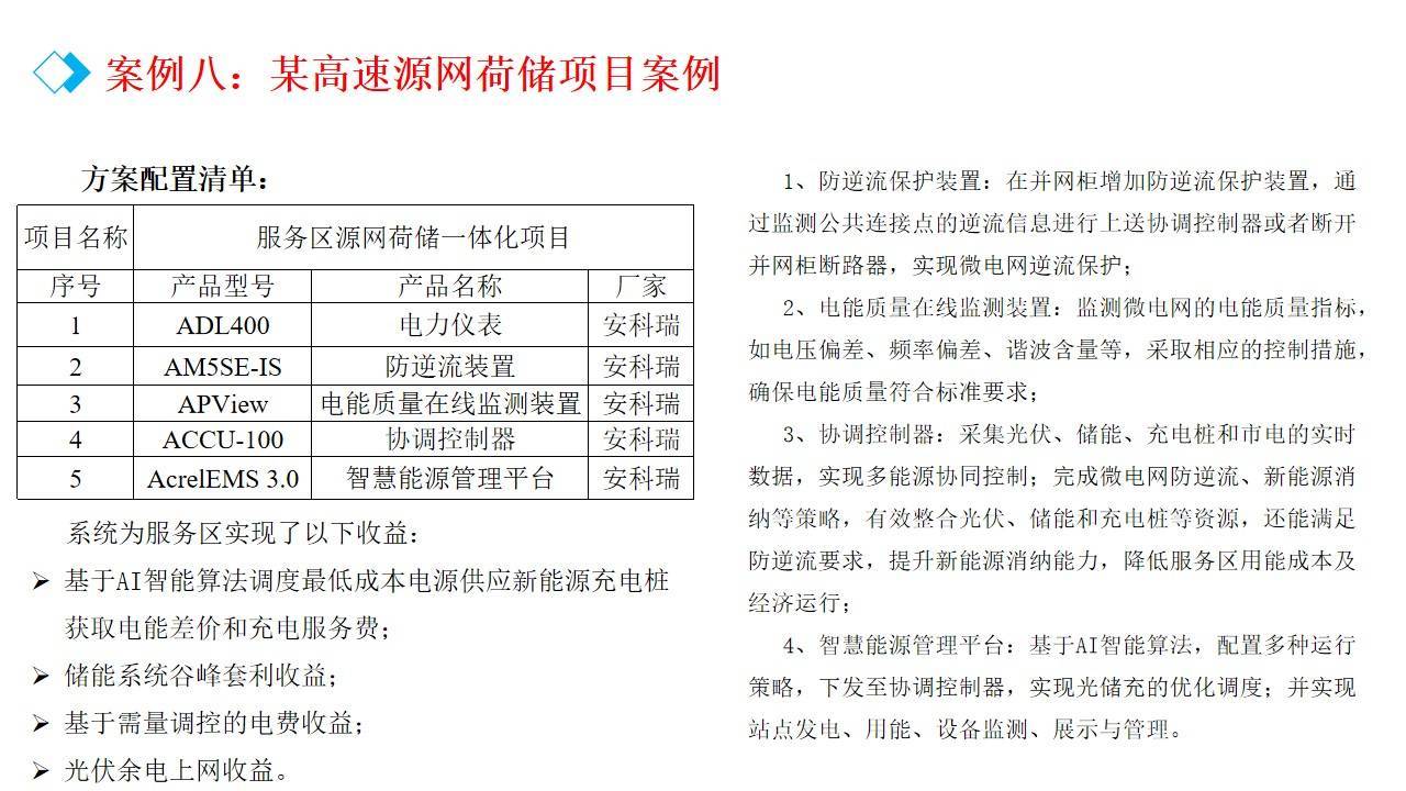 价值:高速公路服务区充电需求集中(尤其是节假日),且多数位于偏远地区,电网容量有限,光储充系统可 "自发自用",避免因电网扩容导致的高成本;高铁站 / 机场的光储充系统,还可在极端天气(如台风、暴雪)导致电网断电时,为充电桩和应急设施供电,保障基本服务。安科瑞 郭海棚 +198/2138/0729