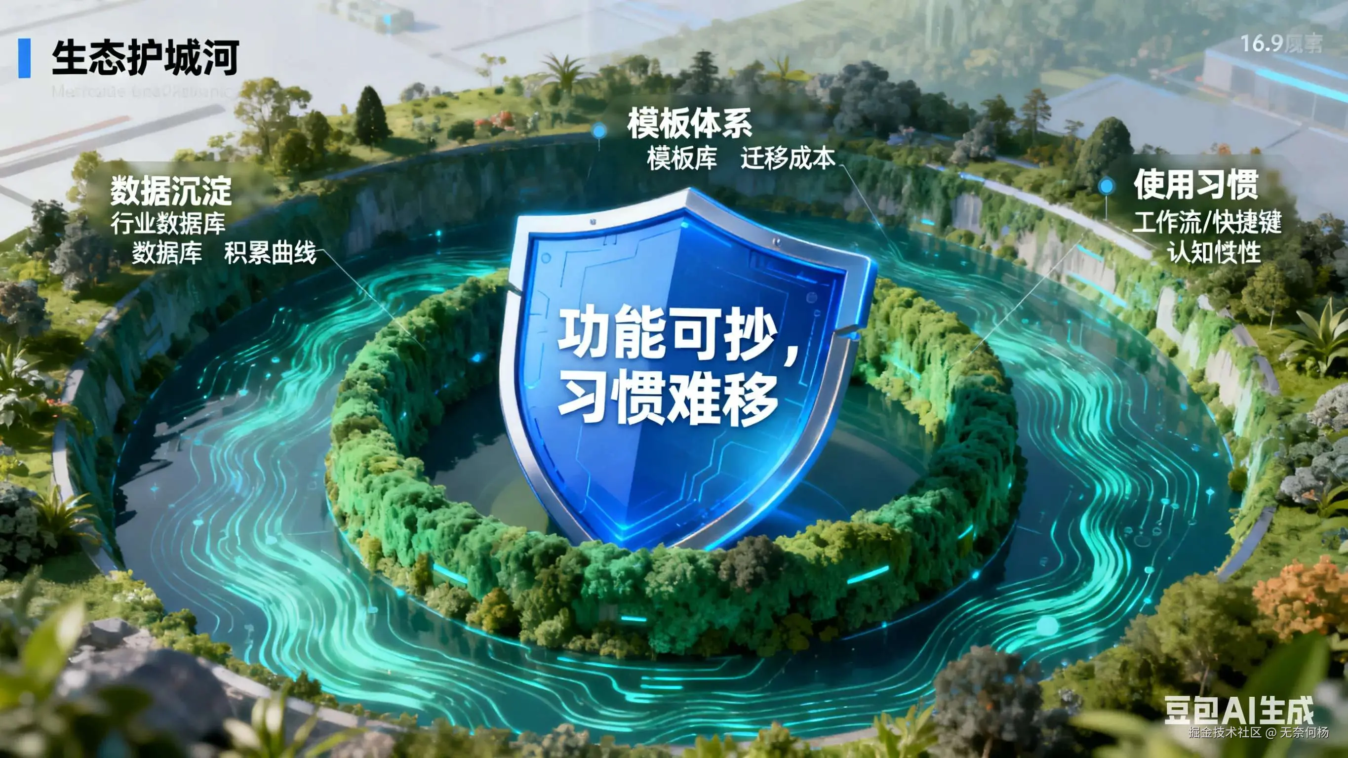 - 模板体系:用户使用你的模板越多,迁移成本越高;