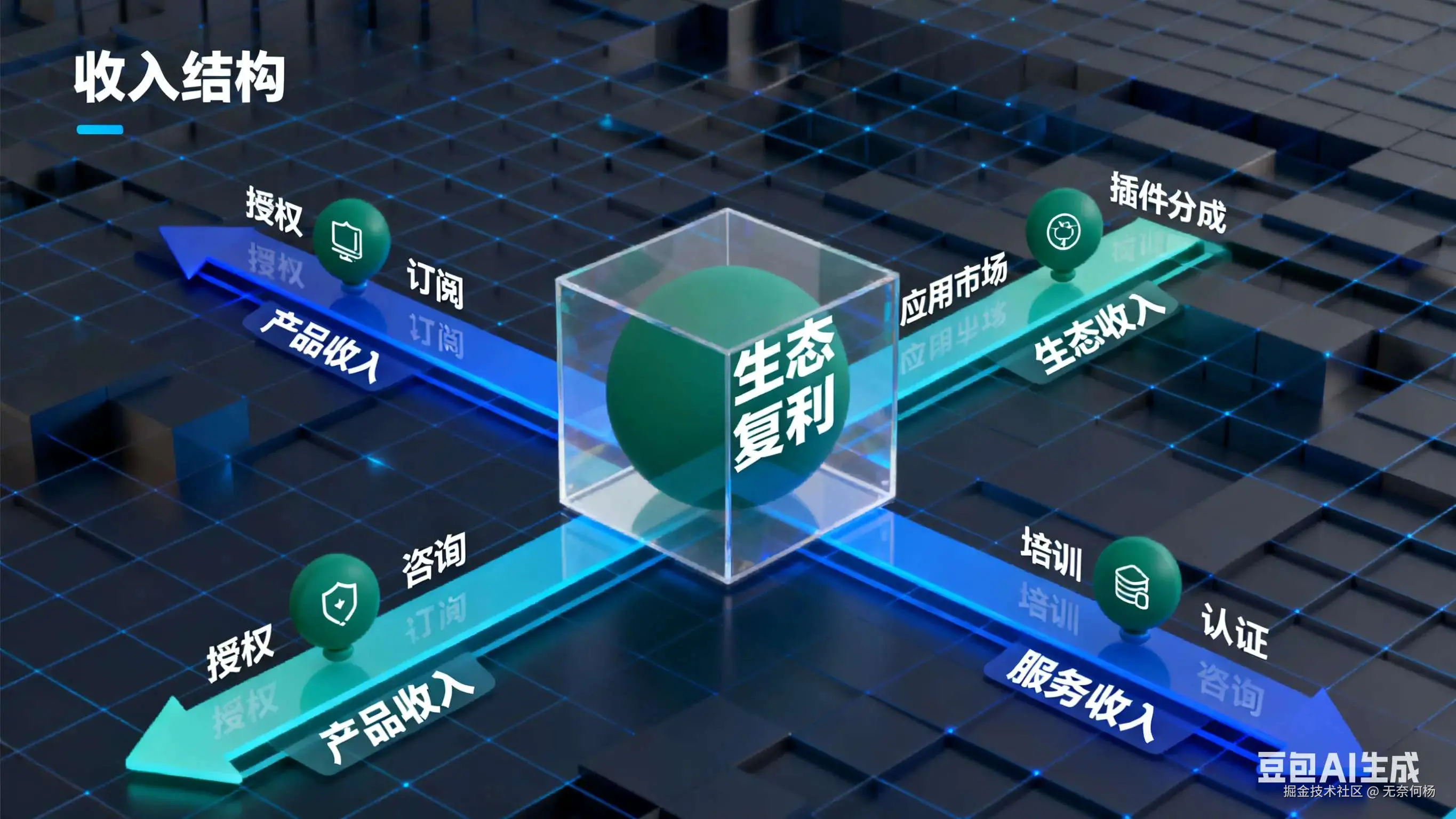 服务收入 | 培训、认证、咨询、定制 | 附加价值延展 |