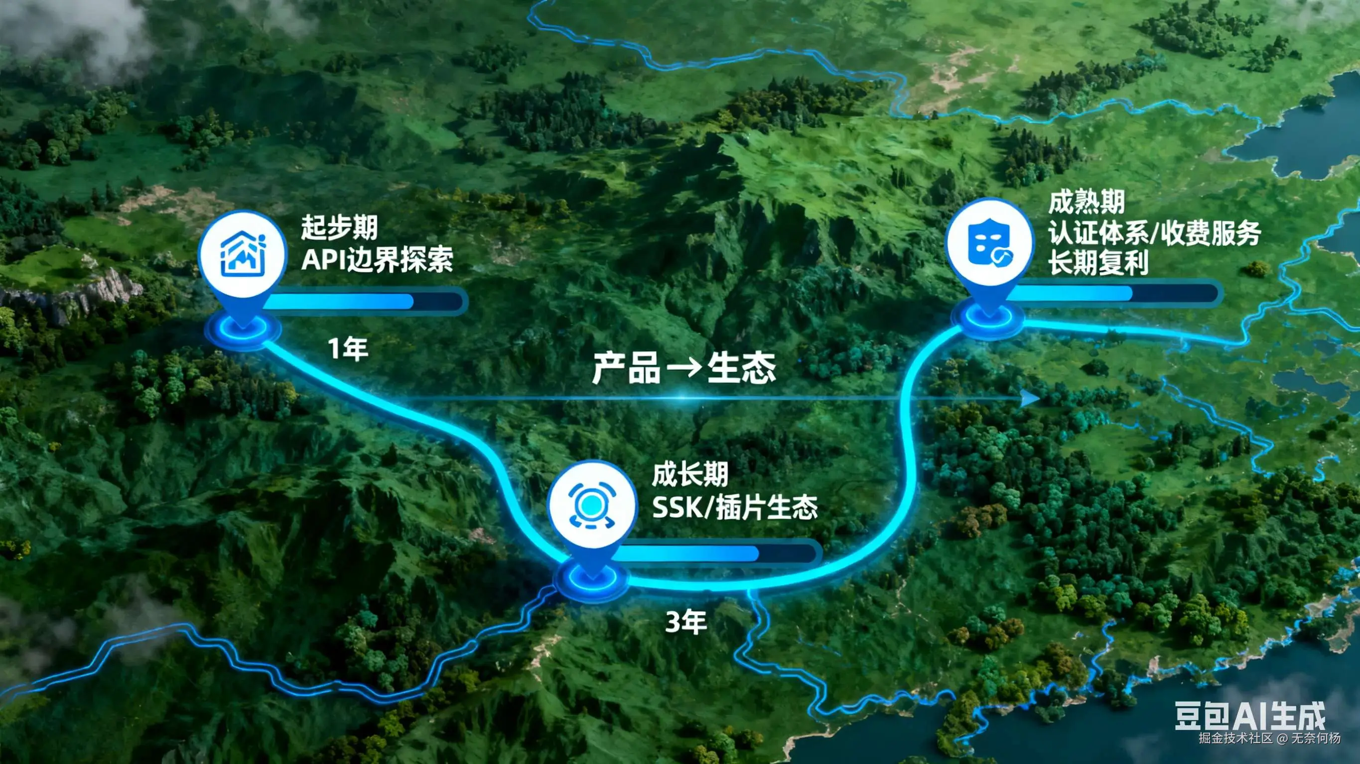 成长期(1-3年) | 吸引生态参与者 | 发布SDK/插件机制/案例库 |