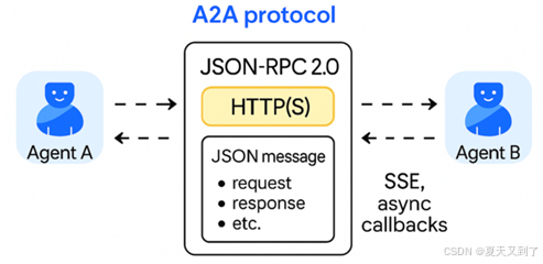 A2A协议建立在开发者熟悉的网络技术之上:其核心通信方式是JSON-RPC 2.0 over HTTP(S),如图8-2所示。