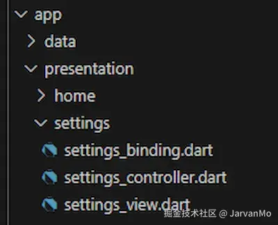 命令 get create page:settings 将会在 presentation 文件夹内部生成一个名为 settings 的文件夹。