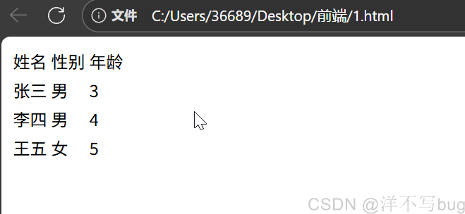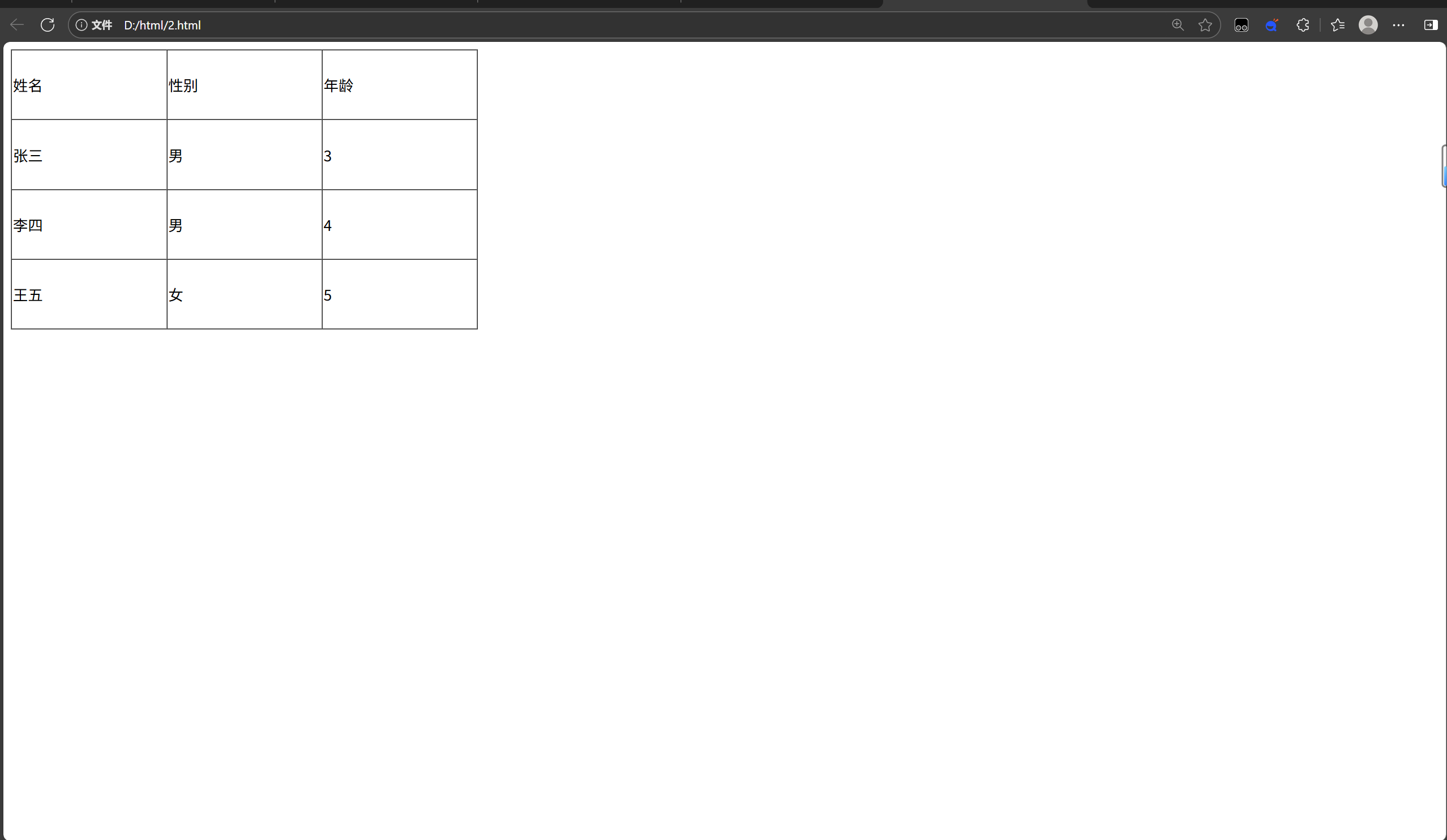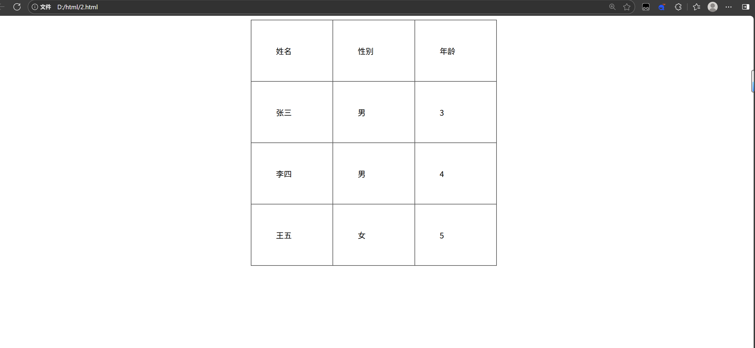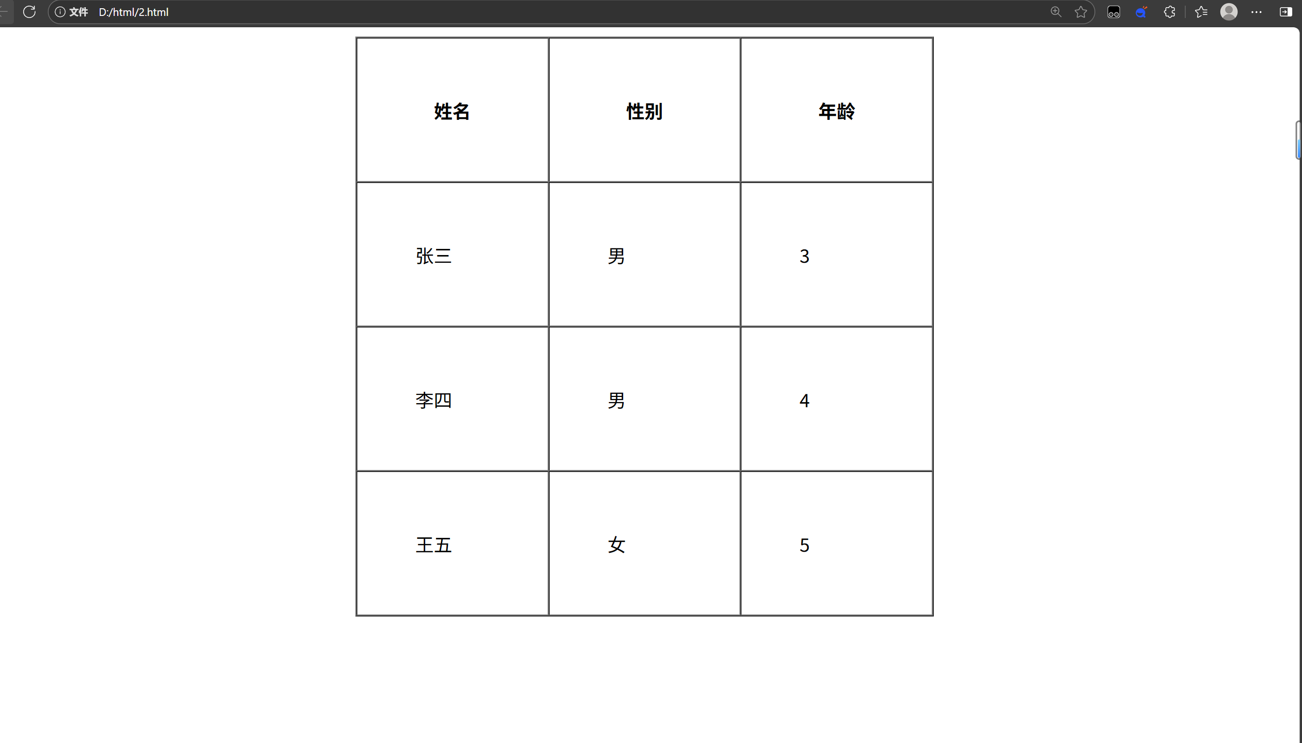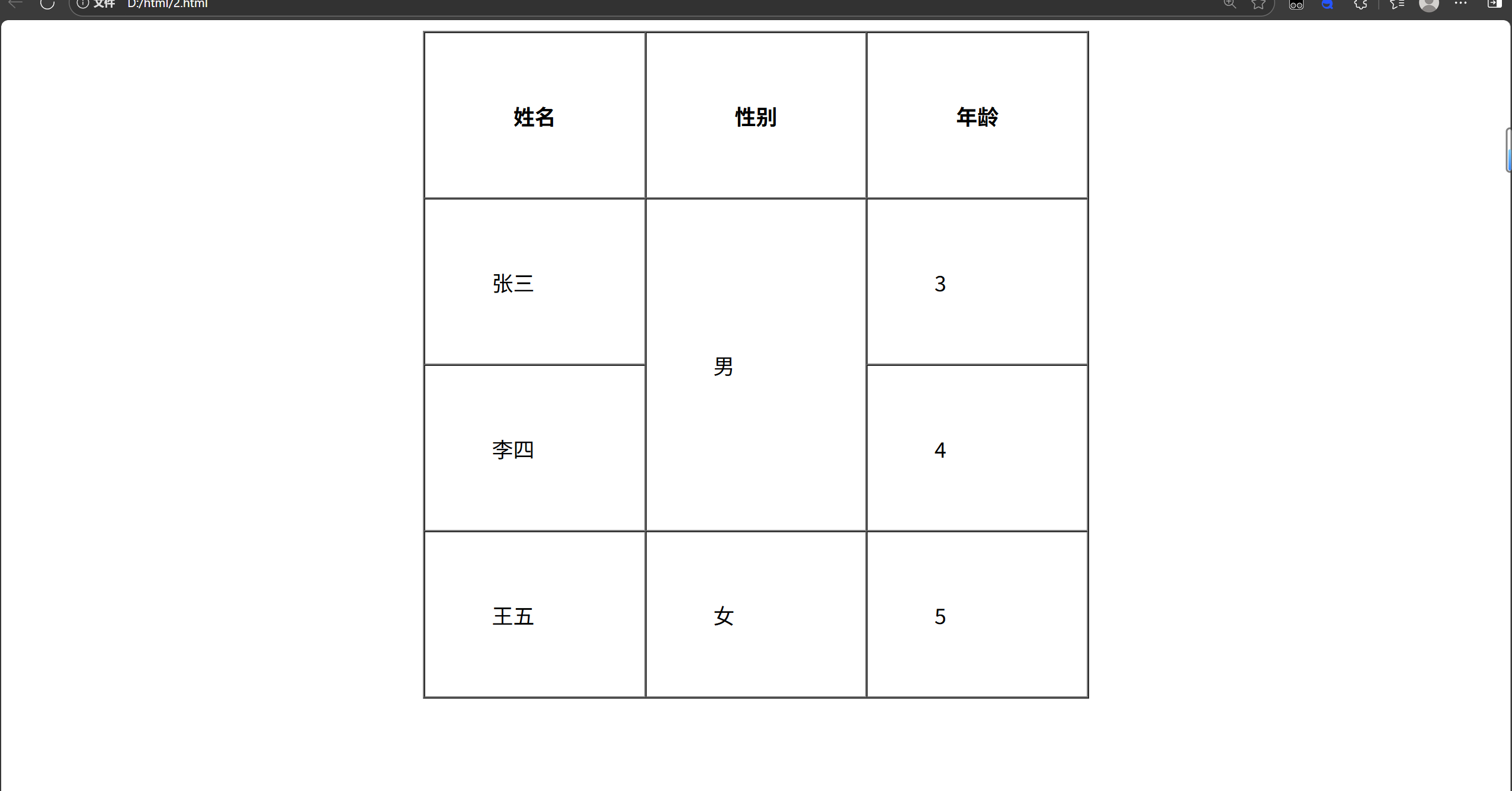 rowpan翻译过来就是跨行数的意思,让上面这个"男"跨两行,下面这一行性别这列的单元格就不用写了