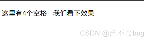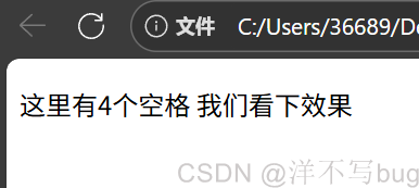 如下所示,这里打出四个空格,在网页中却只能显示出一个,在需要多个空格的效果时,就要使用